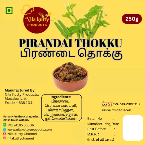 Pirandai Thokku made with fresh herbs and authentic spices—rich in taste and known for its natural health benefits – —perfect with rice, dosa, or curd rice.
